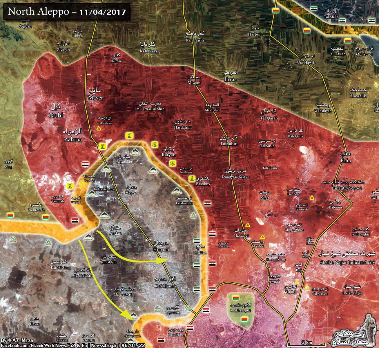 Aleppo. SAA+ získala Al Arimu a Khirbat al-Uraymah / Khirbat Anadan