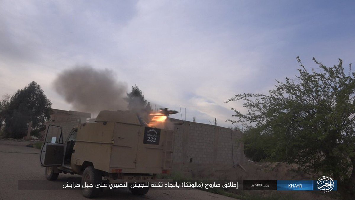 Improvizace islamistů v DeZ. Toyota+věž z BVP-1 a odpal Maljutky