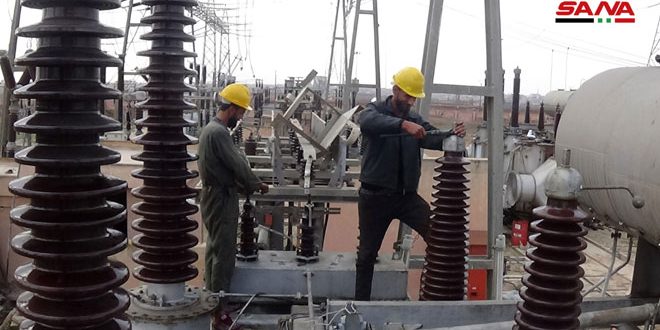 Práce na vylepšení elektrickej siete v Daraa.