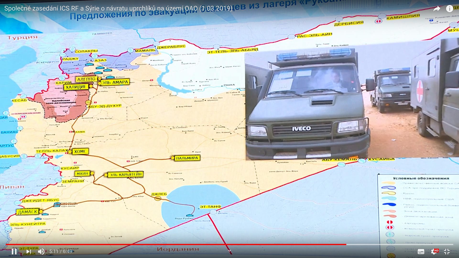 Generálplukovník Michail Mizintsev: Obracím se na velení amerícké armádní skupiny jednotek v An-Tanaf: Na vás teď leží zajištění bezpečného a bezproblémového průchodu konvojů a jejich doprovod, přes vámi kontrolovanou 55km zonu. Ne slovy, ale skutky musíte dokázat svoji ochotu, že vám záleží na lidech Sýrie, kteří se nachází v Rubkanu, je jich tam kole 40000 a jednoznačně se vyslovili, že chtějí opustit tento tábor, v čemž je jim bráněno