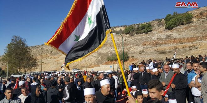 Stovky ľudí sa zhromaždili v meste Majdal Shams v sobotu, aby odsúdili vyhlásenie amerického prezidenta Donalda Trumpa o uznaní izraelskej suverenity nad okupovaným územím Golanské výšiny.