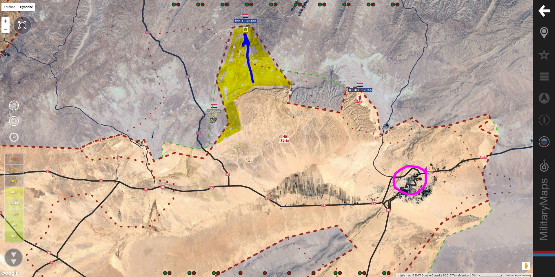 Palmýra. SAA+ získala výšku severne od mesta.