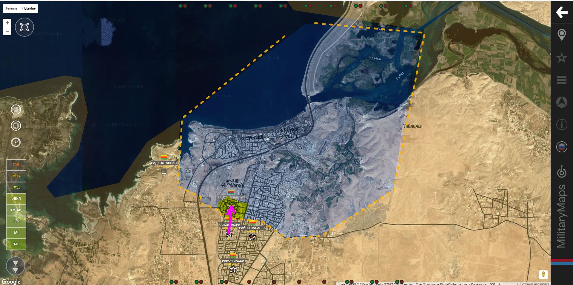 Tabka. SDF+ získali 6 okresov: AlMahaja,AlBusaraba,Abu Aish,Assyrian Church,AlQasra,AlMashar.