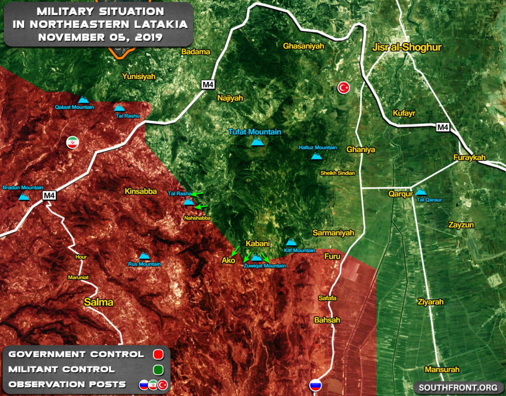 VOJENSKÁ SITUACE V SEVERNÍ LATTAKII 5. LISTOPADU 2019 (AKTUALIZACE MAPY)