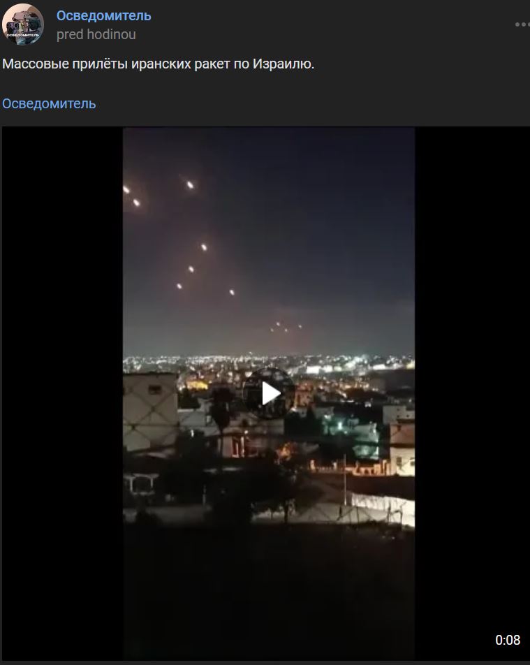 Zdroj https://vk.com/wall-123538639_4337834 z 02.10.2024Jeden zo včerajších (utorok 01.10.2024) príletov iránskej balistickej rakety sa nachádzala 400 metrov od štábu / sídla Mossadu a 500 metrov od hlavného administratívneho tábora Izraelských obranných síl v Ramat ha-Šaron.