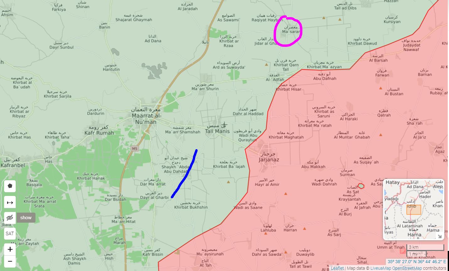 Reportér agentúry SANA uviedol, že operácie armády sa v posledných niekoľkých hodinách zameriavajú na pozície teroristických skupín na okraji mesta Maaret al-Numan a na dediny Al-Deir al-Sharqi a Maarshemarin, a Maasaran v oblasti medzi Maaret al-Numan a Saraqeb.