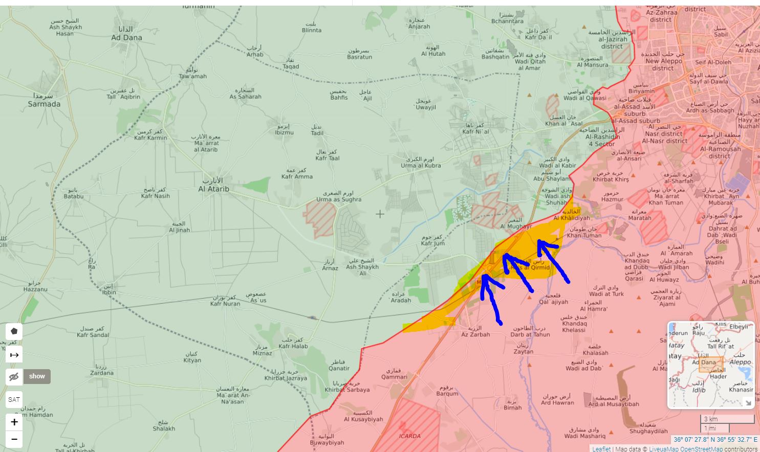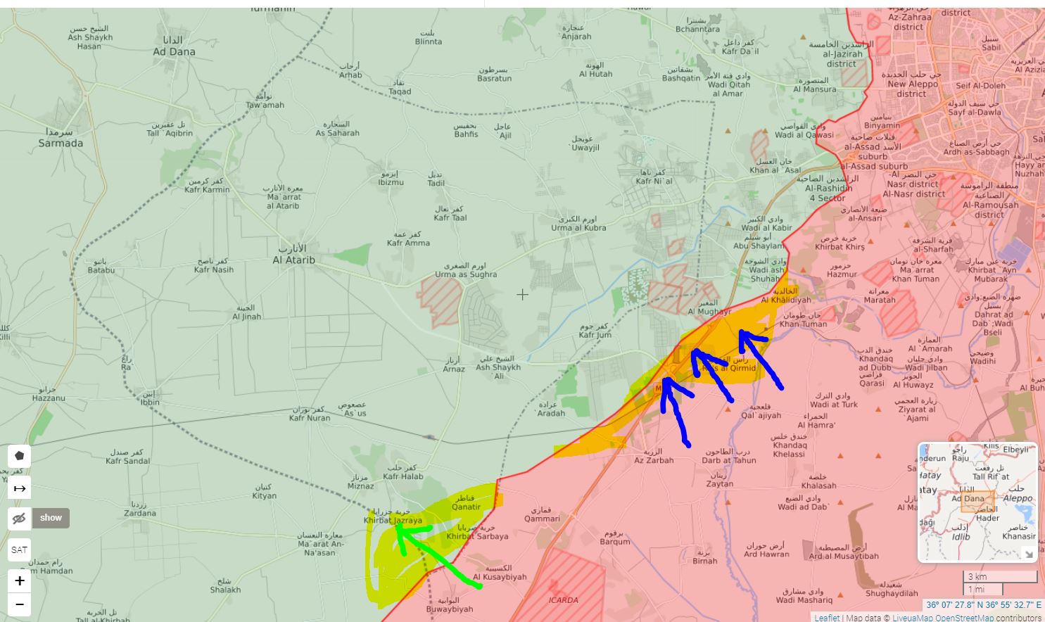 :sipka: Jihadi protiútokk, podporovaný tureckým delostrelectovm pri Saraqeb a Nayrab