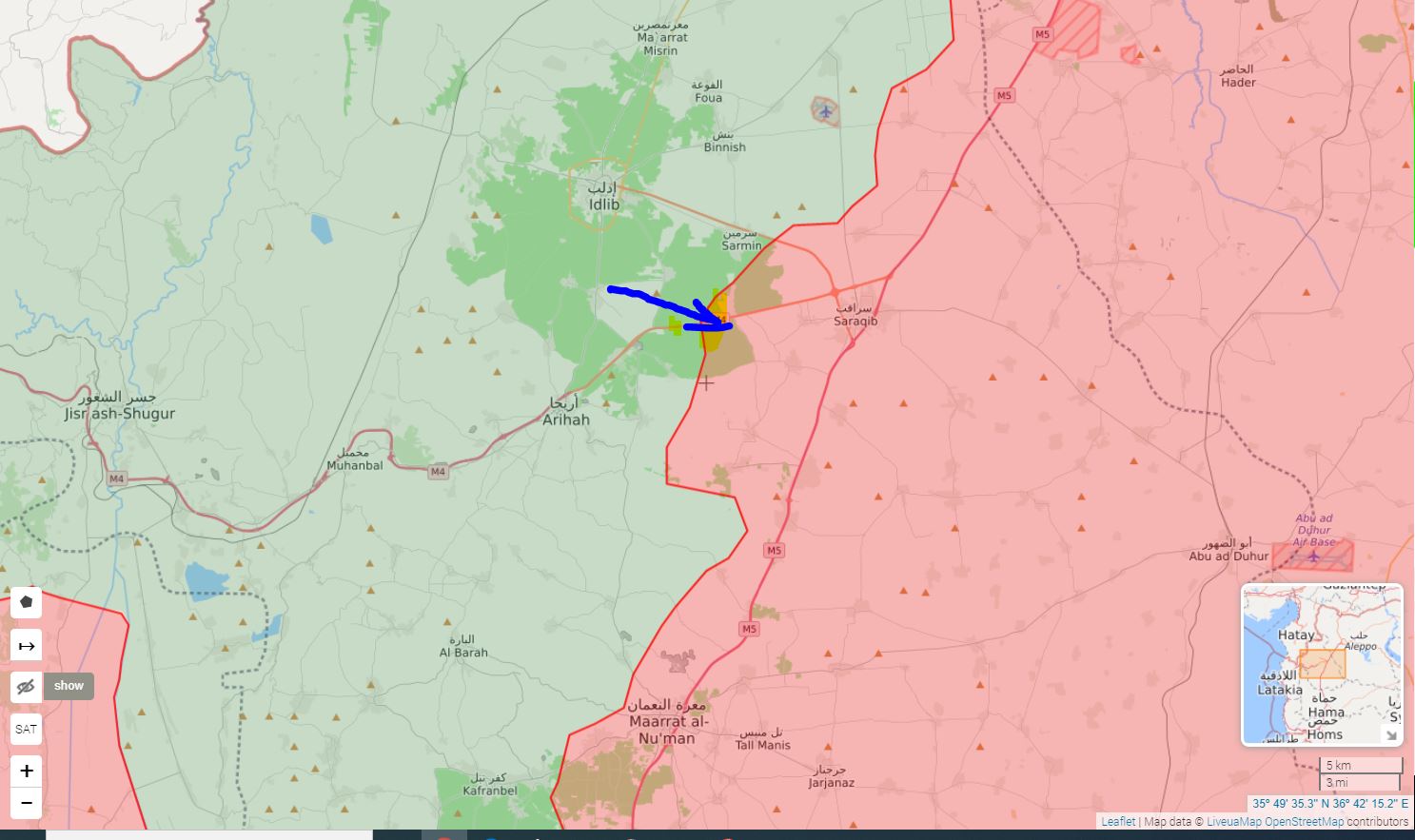 Sýrska arabská armáda obkľúčila turecké pozorovacie miesto v Sararaqibe blízko mesta Idlib.