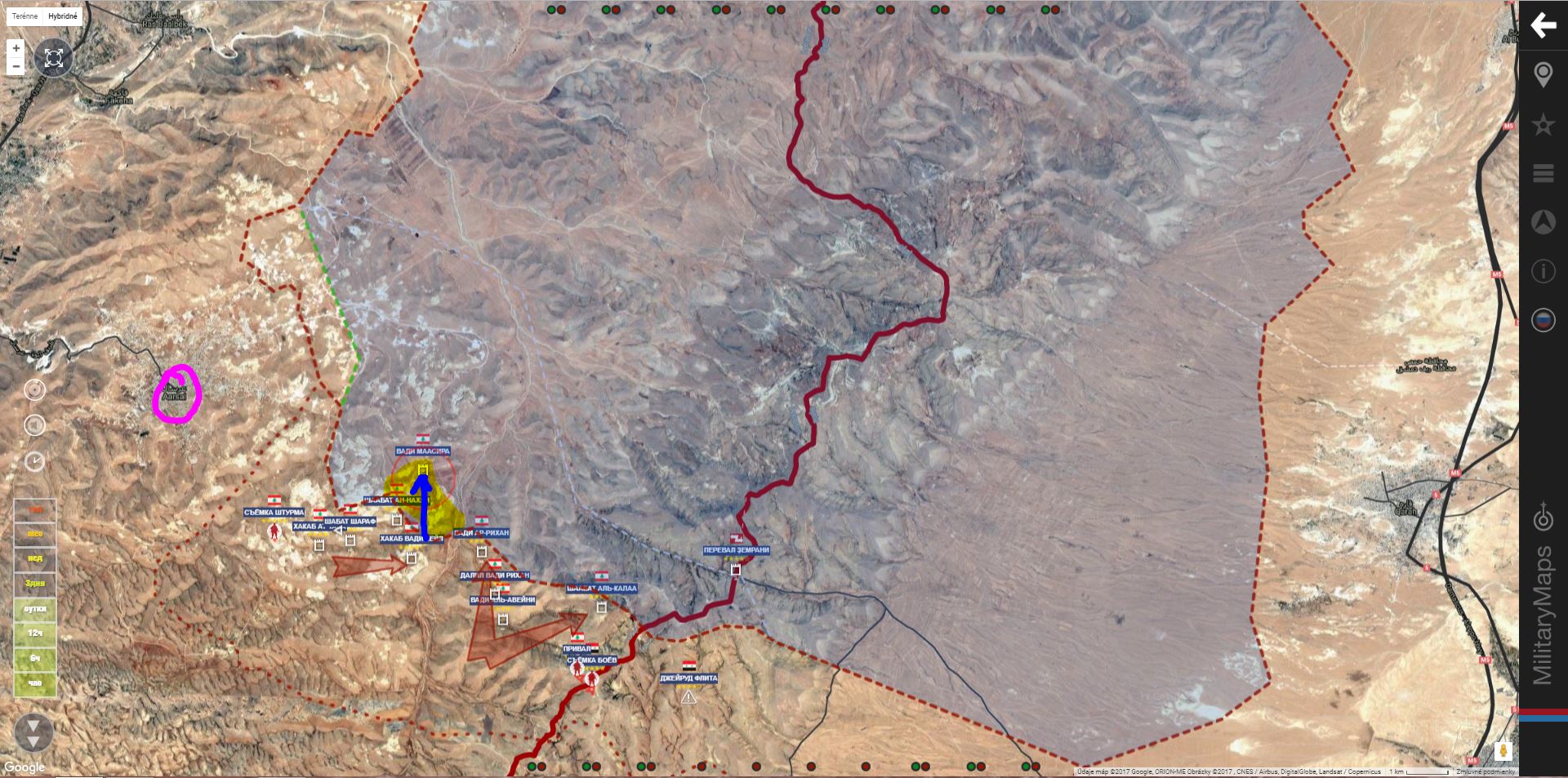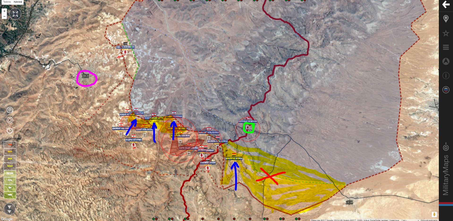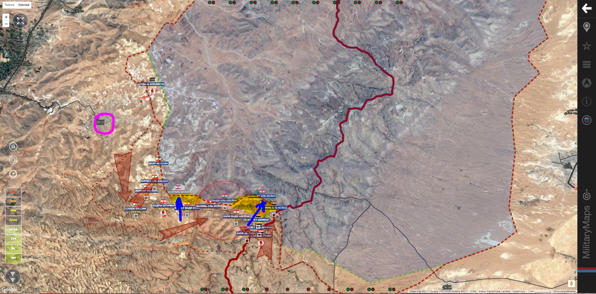 Arsal. Hezbollah pridal Wadi Daqeeq a Wadi Za'roor, SAA+ Dalil Al Haji.IgorT píše: ↑21 črc 2017, 17:56Hezzbollah zaútočil na území Libanonu na a získal Ar Rahwu a výšinu Dawr Al Hawa,IgorT píše: ↑21 črc 2017, 07:08Damašek. Sýrska republikánska garda spolu s Hizballáhom a Národnými obrannými silami (NDF) začali svoju dlho očakávanú ofenzívu v horách Qulamun,v provincii Rif Dimashq v západnej Sýrii. Chcú vyčistiť kapsu na libanonskej hranici. Libanonská armáda tam vykazuje tiež nejaký pohyb z druhej strany hranice.