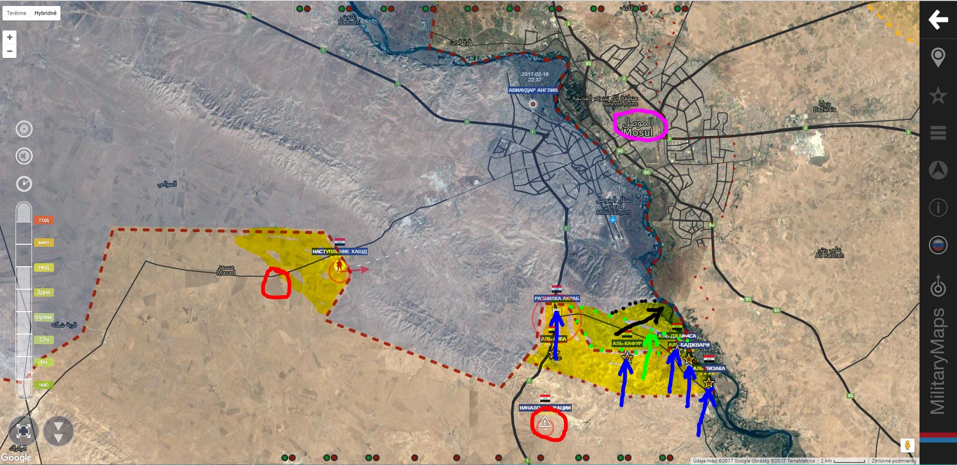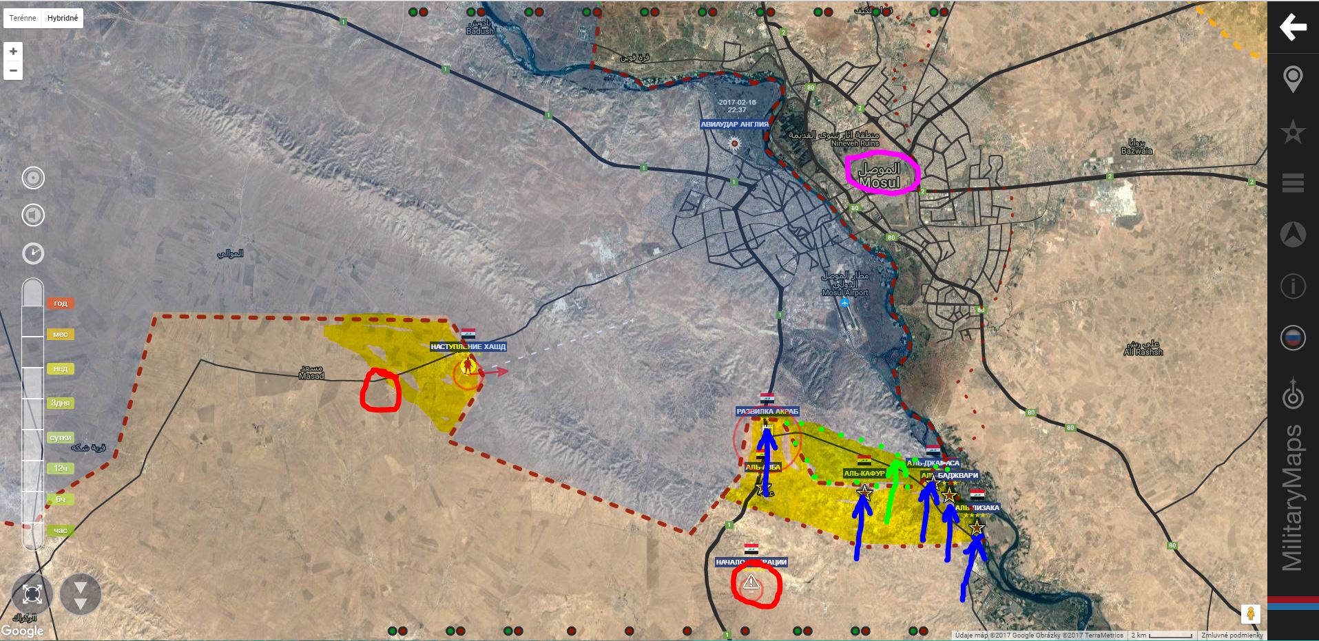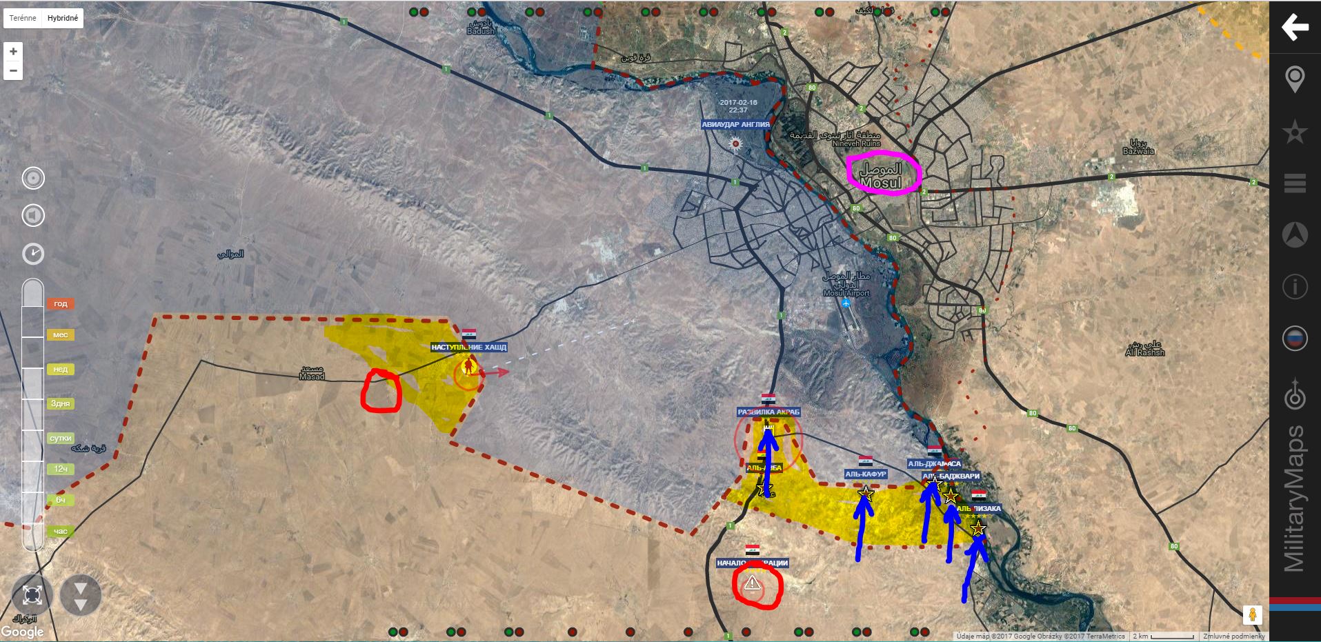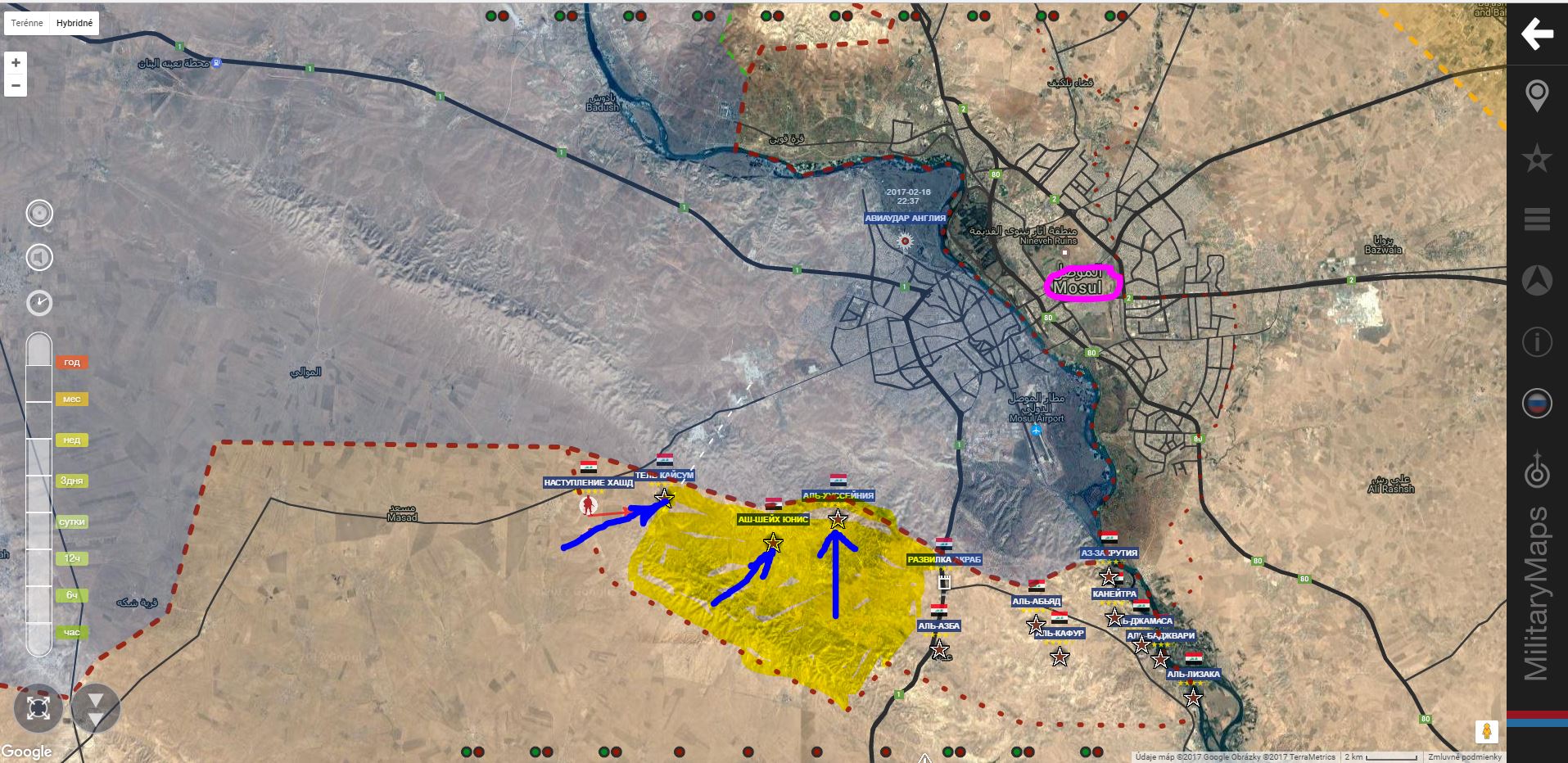 IA+ zaútočila na zápaný Mosul z dvoch smerov, dostala sa zatiaľ po križovatku Al Akrab, asi 2 km južne od letiska.