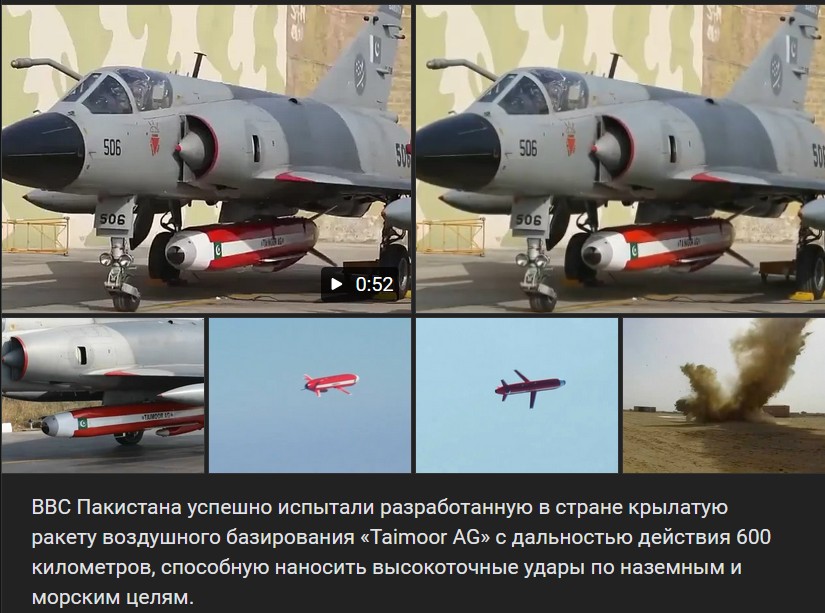 VVS Pakistana úspešne otestovali v krajine vyvinutú leteckú krídlatú raketu „Taimoor AG“ s doletom 600 km, schopnú zasiahnuť pozemné a námorné ciele s vysokou presnosťou.