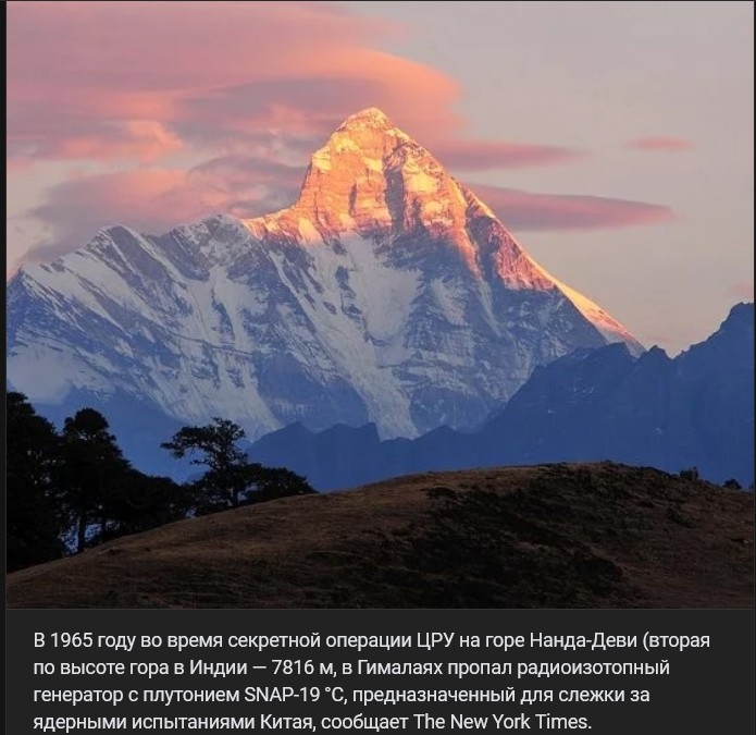 V roku 1965 počas tajnej operácie CIA na hore Nanda Devi (II. najvyššia hora v Indii – 7816 m) v Himalájach zmizol rádioizotopový generátor s plutóniom SNAP-19°C, určený na sledovanie jadrových skúšok Číny, informuje The New York Times.
