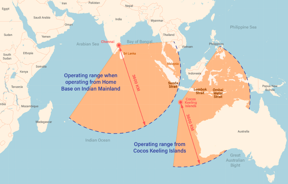 NÁMOŘNÍ DOSAH ZA HRANICEMI INDICKÉHO OCEÁNU SMĚREM K AUSTRÁLII – INDICKÁ MAPA Z ROKU 2020