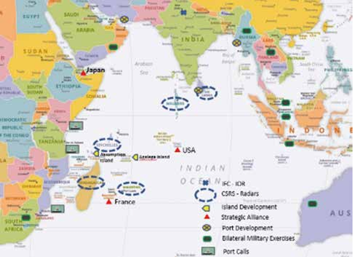 NÁMOŘNÍ DOSAH PŘES INDICKÝ OCEÁN SMĚREM NA ZÁPAD K FRANCOUZSKÝM ZÁJMŮM – INDICKÁ MAPA Z ROKU 2020