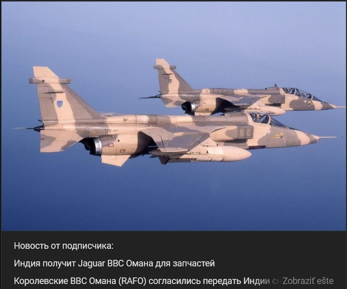Kráľovské VVS Omána (RAFO) súhlasilo s odovzdaním vyradených stíhacích bombardérov SEPECAT Jaguar Indii. Lietadlá, ktoré mali značný počet nalietaných hodín, budú rozobraté a použité ako zdroj náhradných dielov.