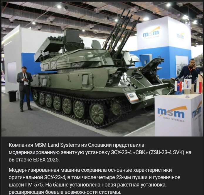 Spoločnosť MSM Land Systems zo Slovenska predstavila modernizovaný protilietadlový systém ZSU-23-4 SVK (ЗСУ-23-4 СВК) na výstave EDEX 2025