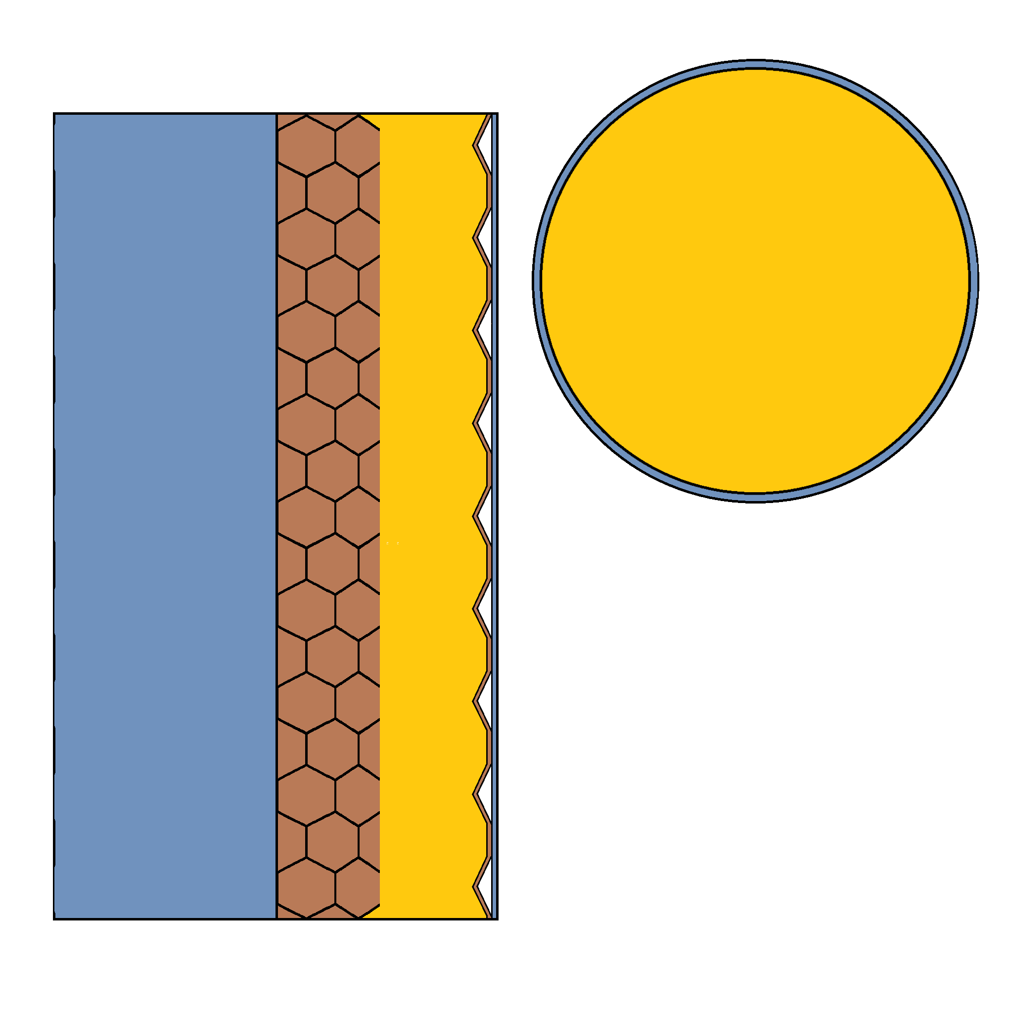 homogenny plášť veľkej hrubky - výbuchom sa rozpadá na veľké črepiny približne kockatého tvaru