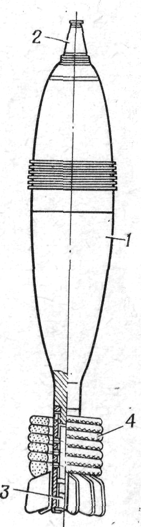 - vplyvom pohybov míny (mína sa za letu viac alebo menej kýva) a gravitačnej sily odpadne poistka 3 nabok.