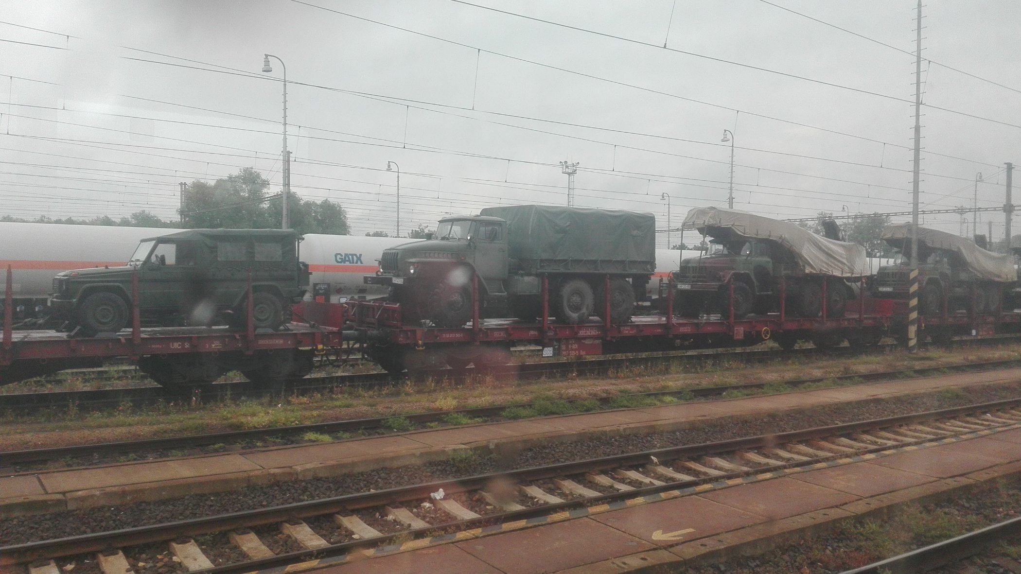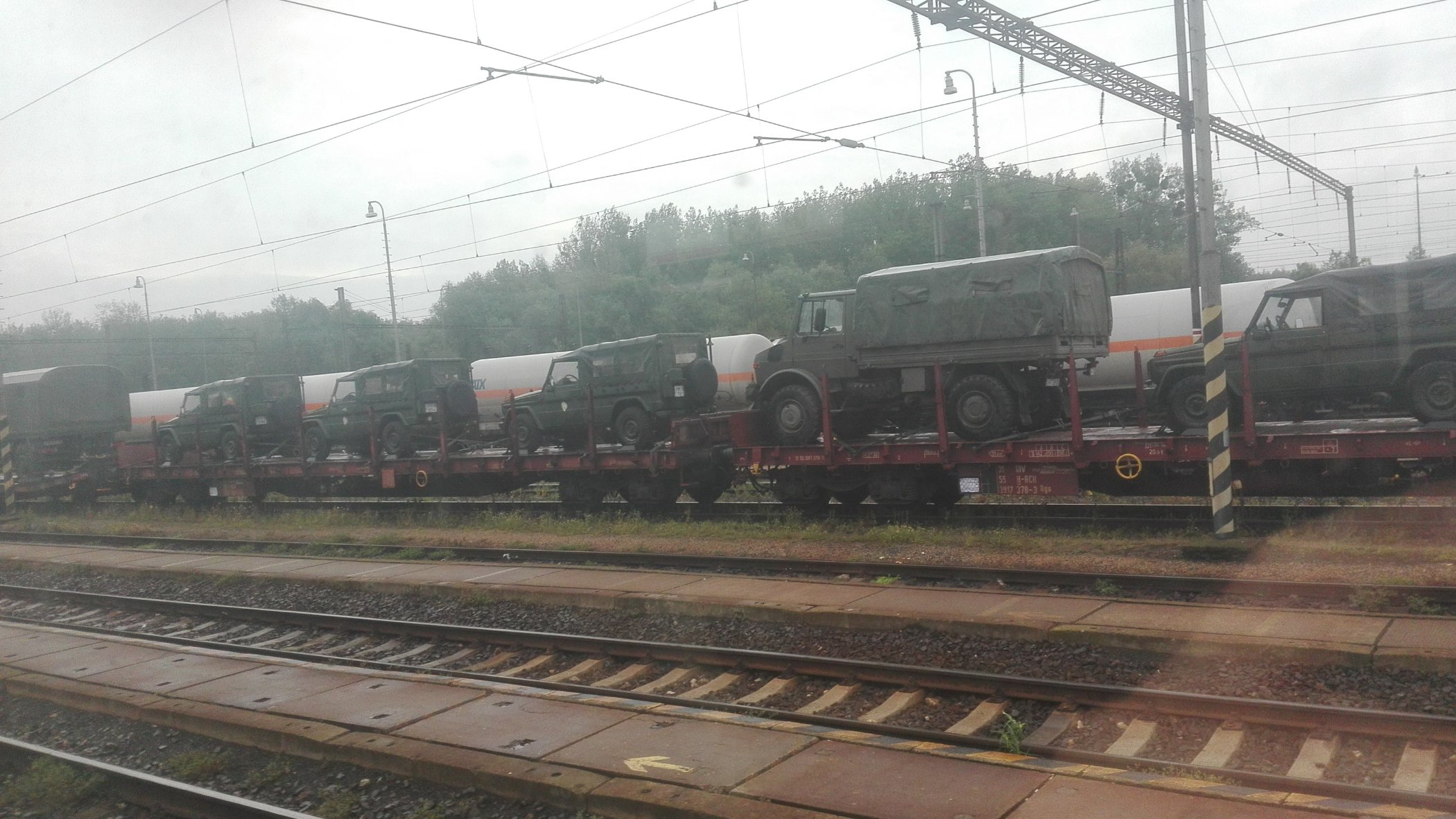 Zato maďari neriskovali a rakeťákov pekne navagónovali. Fotil som to minulý týždeň v stredu ráno v Kútoch. Asi šli na strelby na Balt. Čo ma zmiatlo boli český vojaci na peróne.