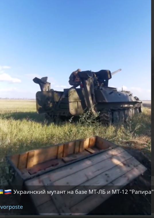 Ukrajinský mutant založený na modeloch MT-LB a MT-12 Rapira. Video: