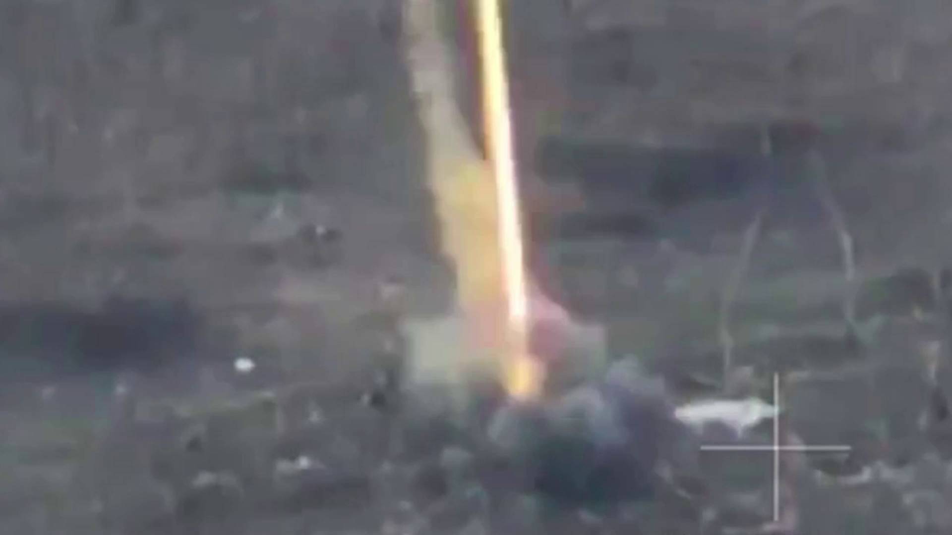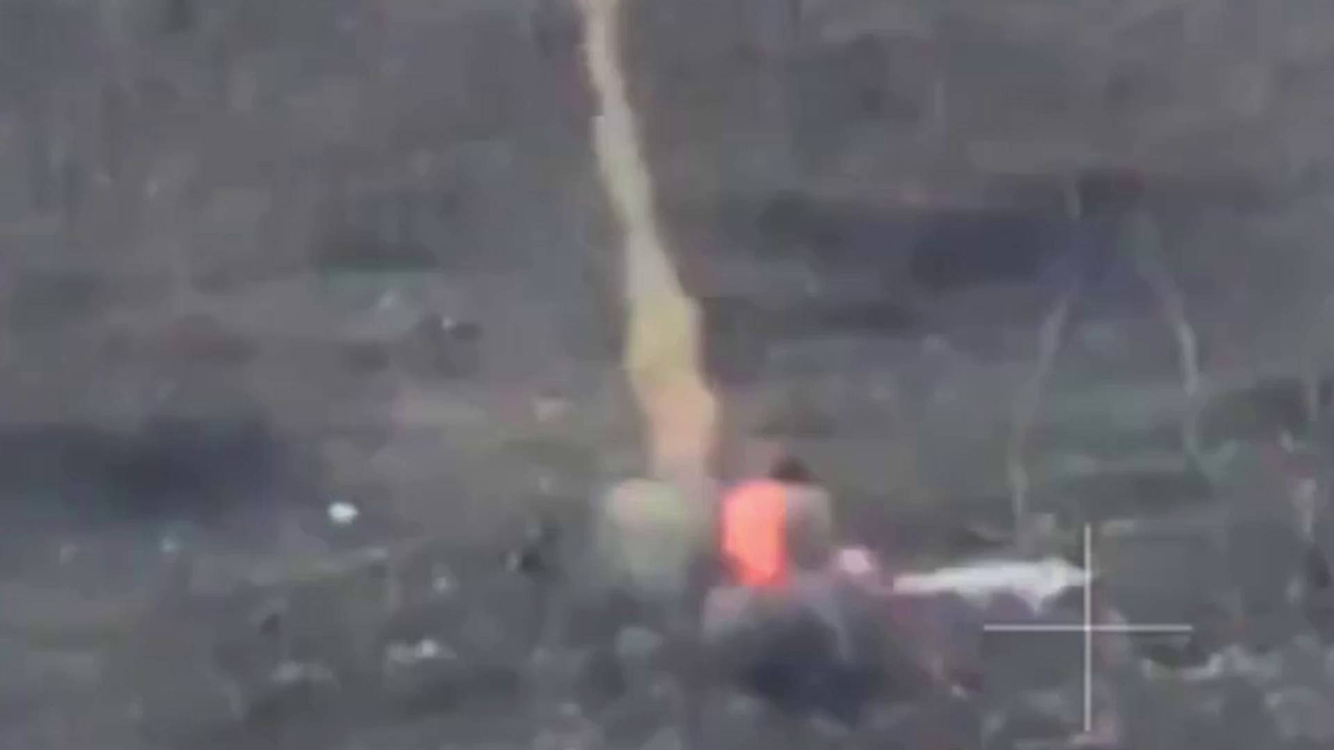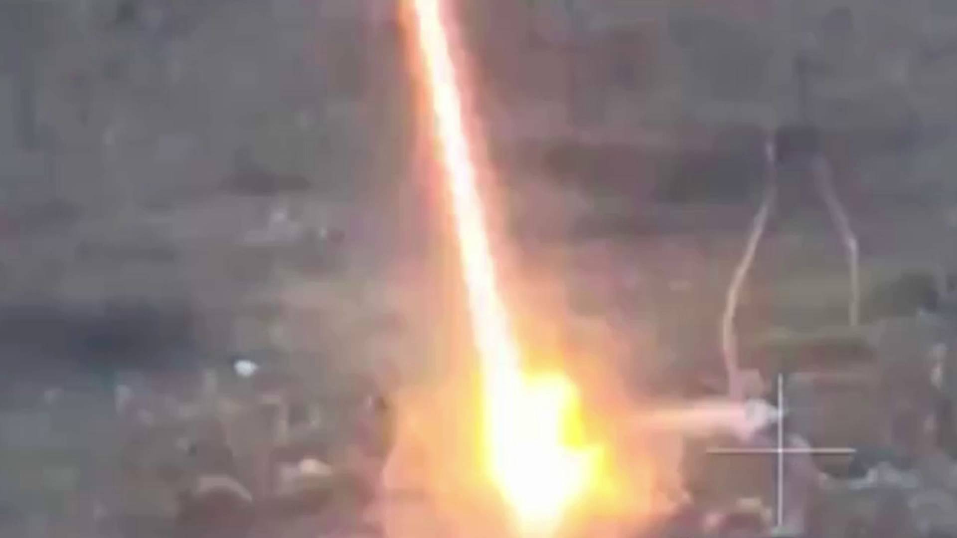 Vehikel dostane dva zásahy - na snímke vždy zásah (záblesk je len na jednom políčku) a nasledujúce políčko videa.Bojové elementy "Motiv-3M" boli použité na zariadeniach AFU pri Avdejevke.