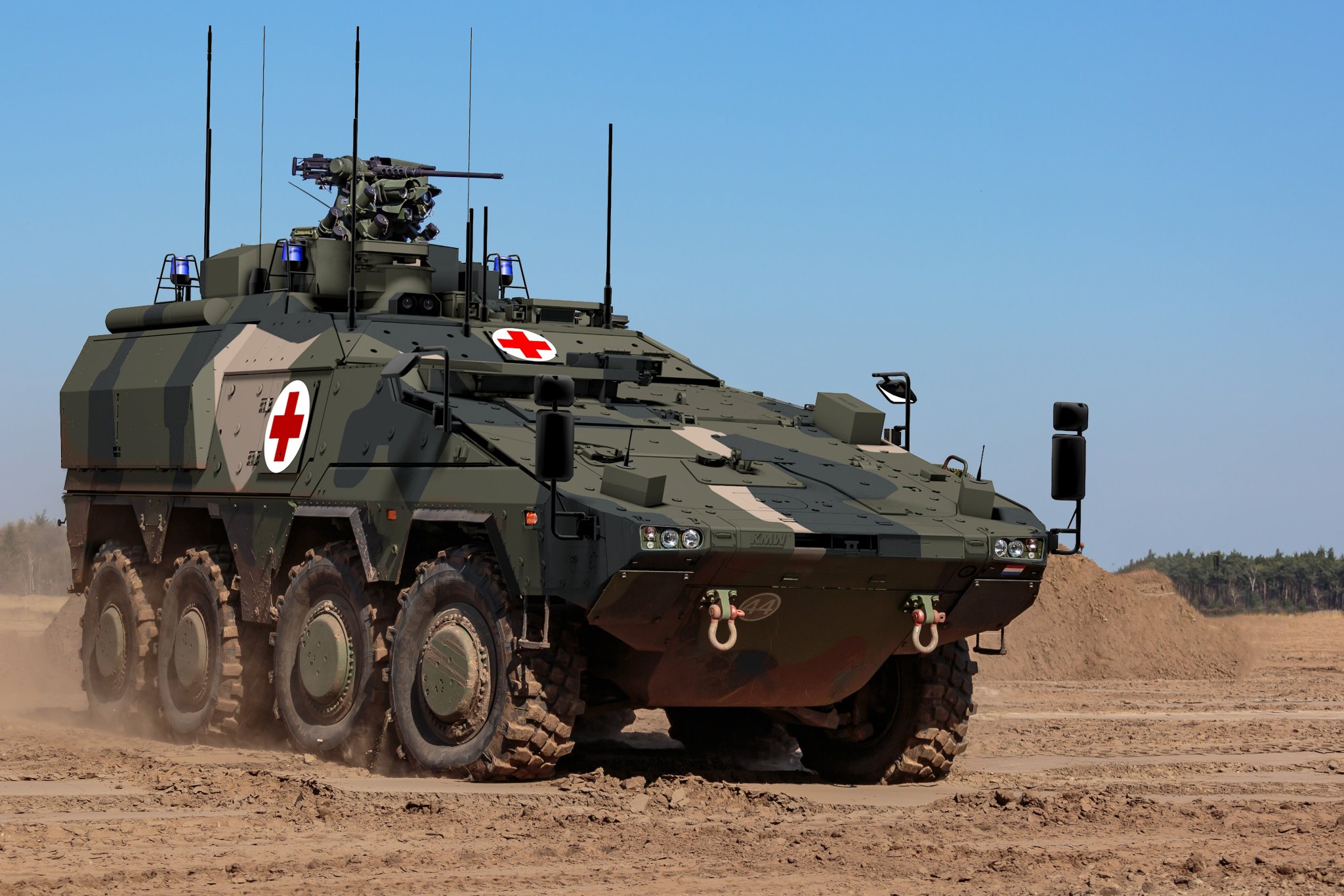 Britský Boxer, sanitní verze. Co mě překvapuje, že když to má symbol Červeného kříže, tak je boxer ozbrojen.