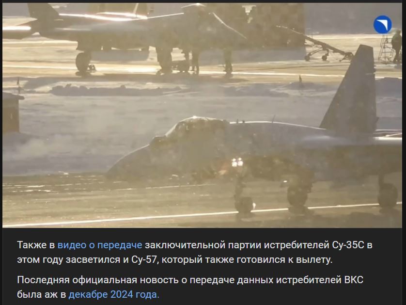 Zdroj https://vk.com/wall-123538639_4774520 z 25.12.2025Vo videu o odovzdaní poslednej partie lietadiel Suchoj Su-35S (Су-35С) v tomto roku 2025 sa objavil aj Suchoj Su-57 (Су-57), ktorý sa tiež pripravoval na odlet.