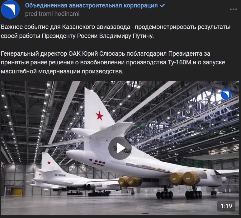Ja bol v tom, že Tu-160M1 (staré modernizované) a Tu-160M2 (novo vyrobené) .. ale teraz OAK čo dal video všetko označil iba ako Tu-160M a všetky médiá a blogeri to tak prebrali