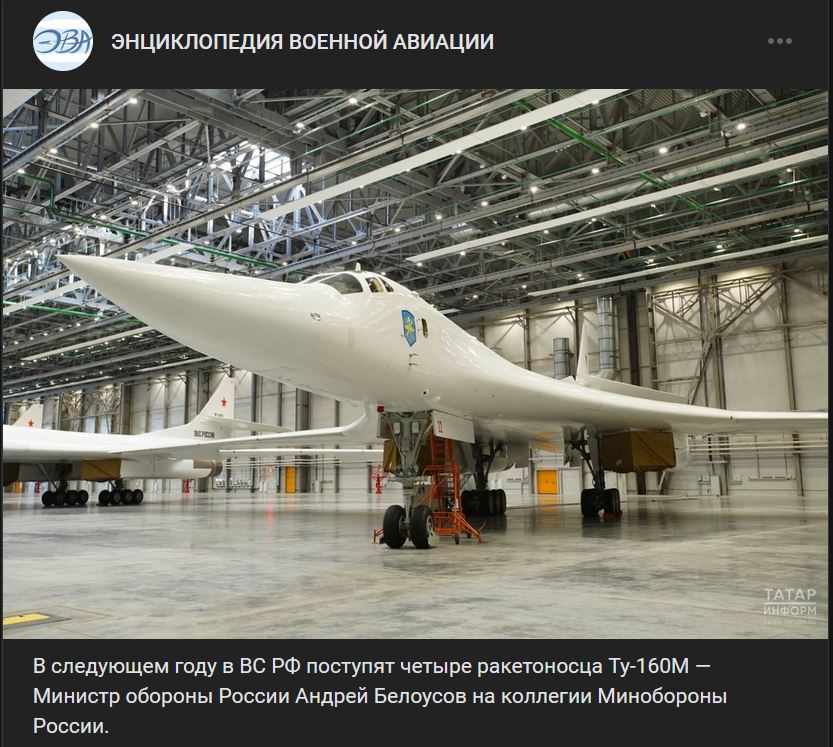 skflanker_ píše: ↑31 pro 2022, 17:50...10 novo-vyrobených lietadiel Tu-160M (Ту-160М) (po starom Tu-160M2 (Ту-160М2)) za 160 miliárd rubľov...
