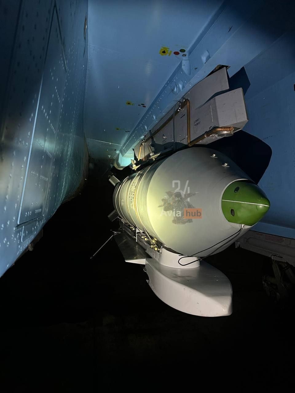 ODAB-1500 s UMPK, podvesená na Suchoj Su-34. Zdroj https://vk.com/wall-123538639_4338635 z 02.10.2024