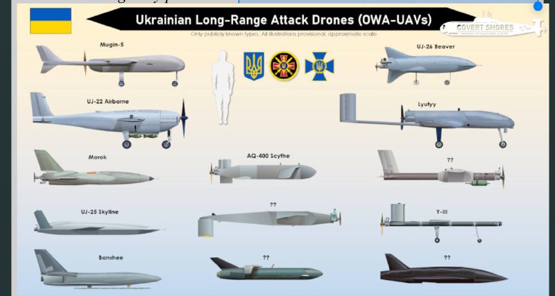 Siluety (pohľad zospodu) dronov a bezpilotných prostriedkov používaných VSU