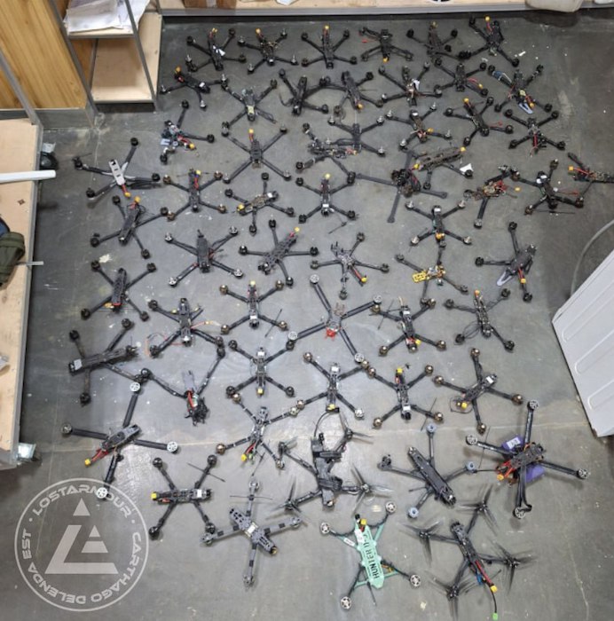 Trofejné ukrajinské FPV drony jednej ruskej jednotky (cca 50 kúskov)