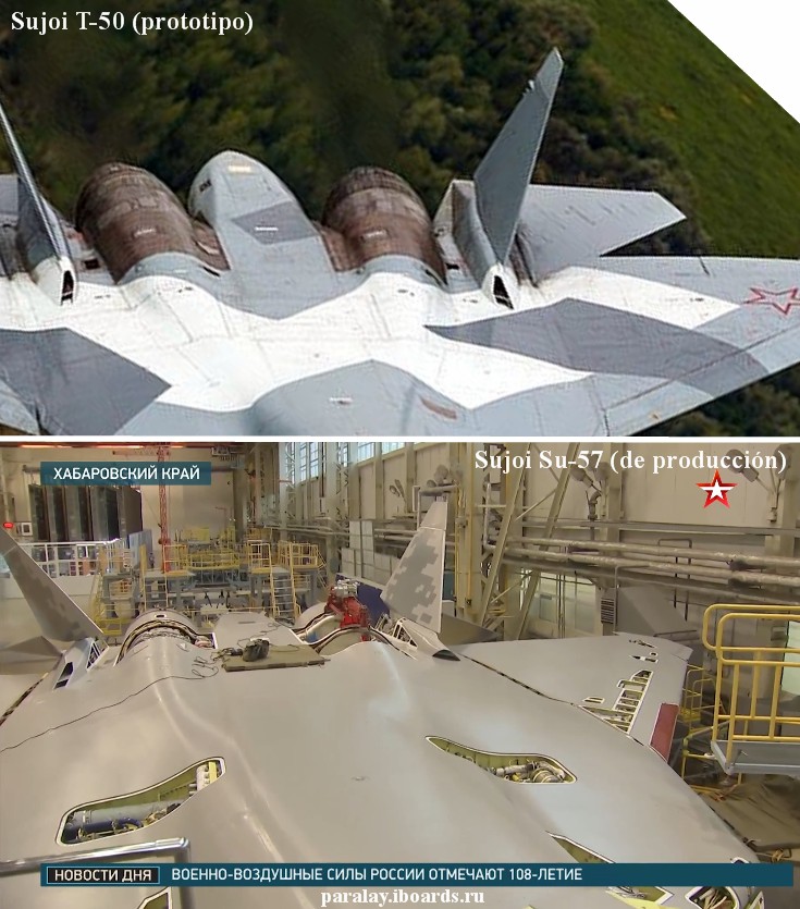 = v porovnaní s T-50 u sériových Su-57 radikálne zmenšili počet montážnych otvorov a poriadne ho "vyhladili"