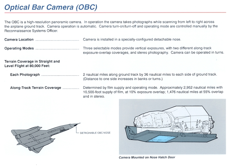 Lenže optické kamery a snímače aktivity nepriateľských radarov boli namierené skoro dole prípadne mierne šikmo dopredu takže ich optika nebola až na tak teplotne exponovanom mieste kde by "rozrážala" vzduch a ten po nej obrazne len kĺzal. A sklenená krytka mohla byť vyrobená z nejakého teplotne odolnejšieho skla.Aaron Goldstein píše: ↑19 říj 2020, 02:55Radom nemusel být z titanu... "okna" kokpitu přeci taky nebyla z titanu... Ve přídi měl panoramatickou OBC (Optical Bar Camera) se zorným úhlem 140°.... Takže i tam musel být nějaký průhledný překryt... A ten také určitě nebyl z titanu.....