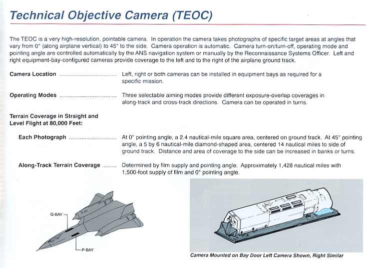 V šachtách na obou stranách rozšířené části trupu byly dvě kamery TEOC (Technical Objective Camera)... I ty musely mít průhledný překryt... Byly tam i přijímače, jejíž úkolem bylo zaznamenávání signálů nepřátelských radiolokátorů a jejich nahrávání na magnetickou pásku... Těm zřejmě stačil ten překryt TEOC...