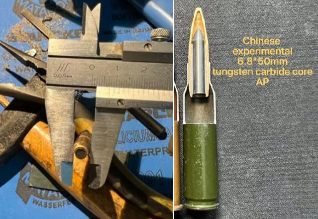 Na internetu se objevila čínská experimentální protipancéřová střela ráže 6,8×50 mm s jádrem z karbidu wolframu. Předpokládá se, že inženýři z Nebeské říše zvažují vývoj zbraně pod nábojnicí ráže 6,8 mm schopné prorazit pancíř zemí NATO.