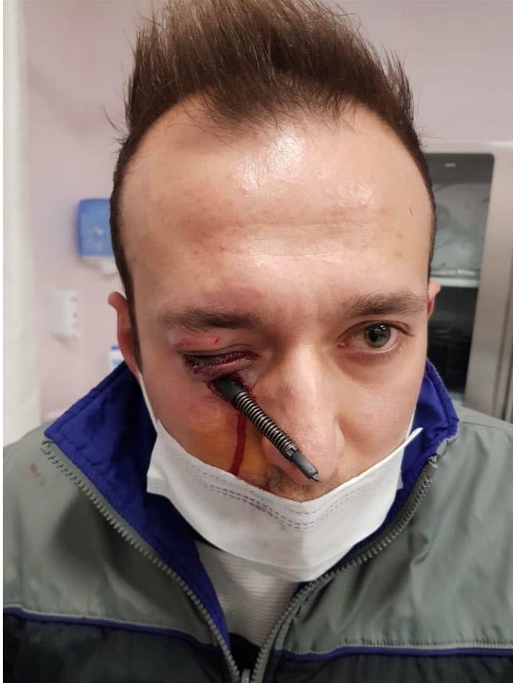 O oko prý nepřišel, nepoužil ochranné brýle, ale nevím jestli by mu to v tomto případě pomohlo.