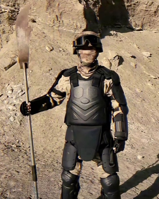 Pasívny? exoskelet pre "nosiča balistického štítu" a balistická ochrana nôh
