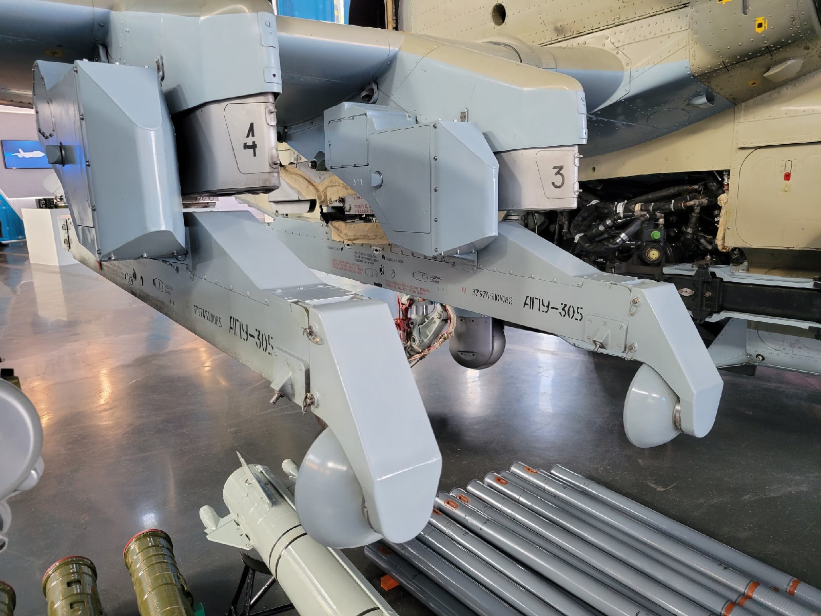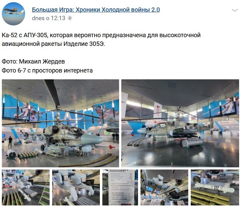 Изделие 305Э (Výrobok 305E) má vlastný závesník APU-305 (АПУ-305) - foto na vrtuľníku Ka-52