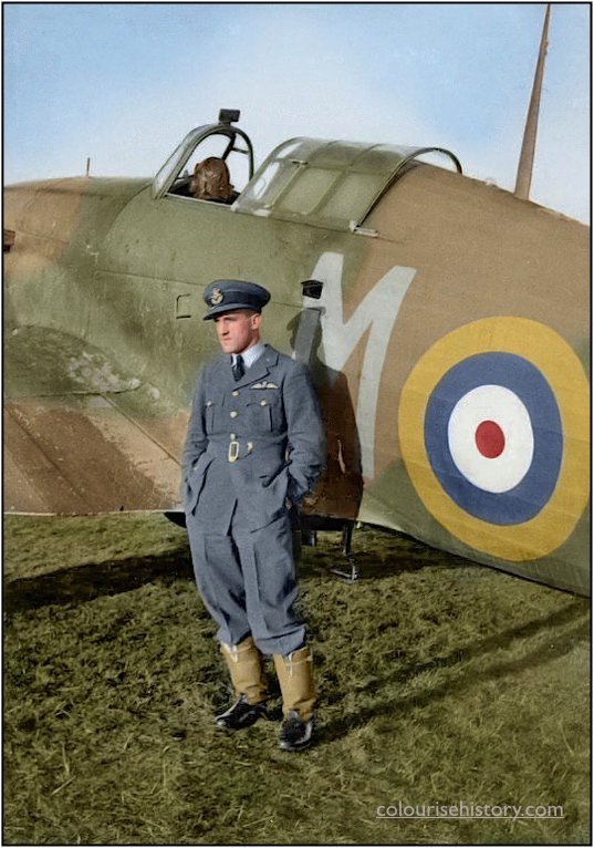Český pilot Karel "Charlie" Mrázek u jeho Hawkeru