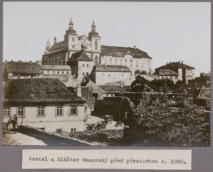Aha, takže je to pohľad od prechodu z druhého nádvoria a stena za kaplnkou zakrýva terajší transcept. Ako vedel som, že v tej dobe bol Svatý Vít nedokončený, ale netušil som, že ho nebola ani polovica.
