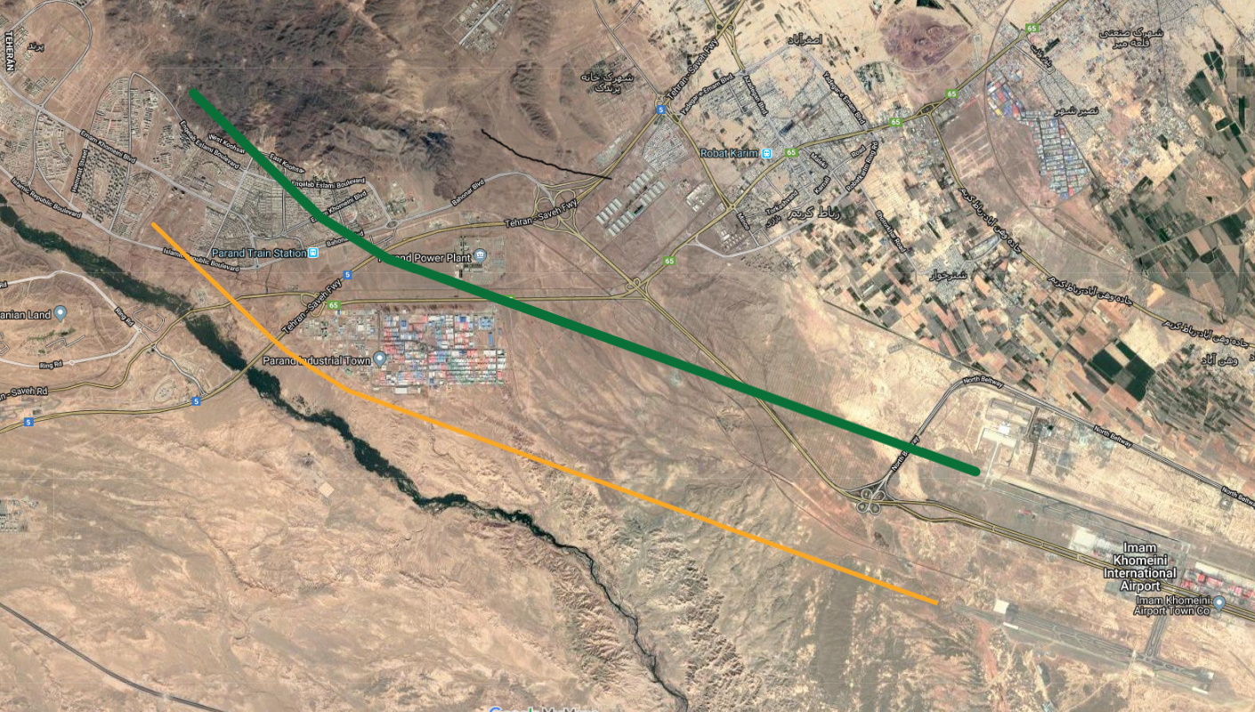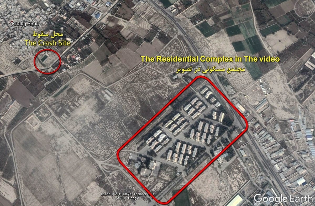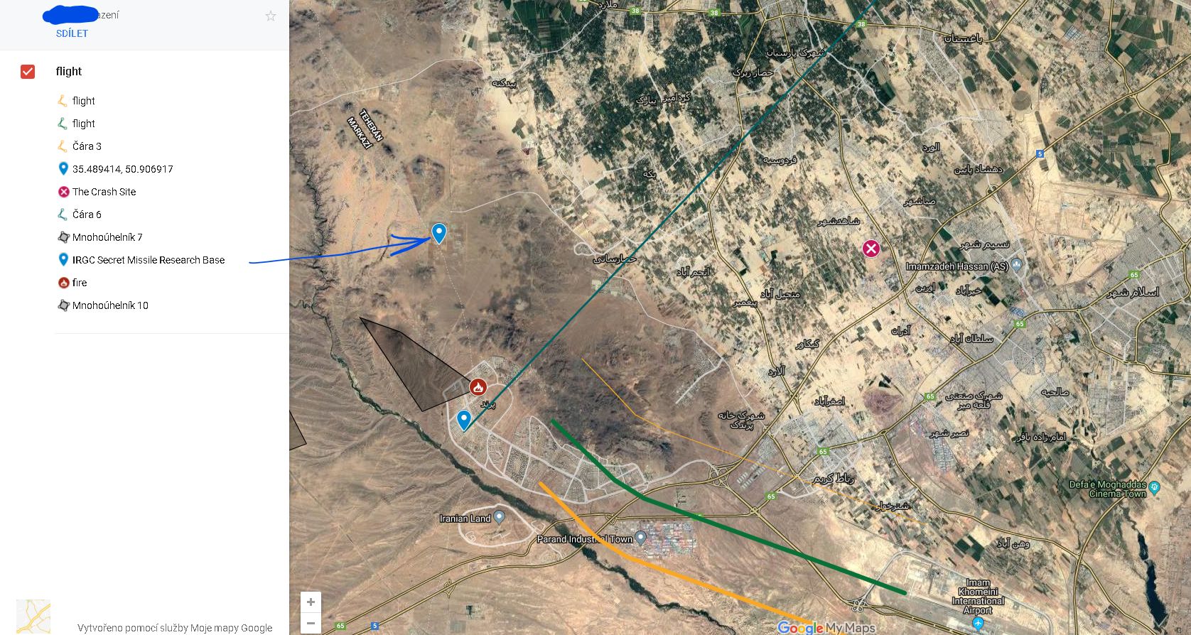 Geo-referenční fotografie údajně íránské rakety, která zasáhla ukrajinské letadlo.