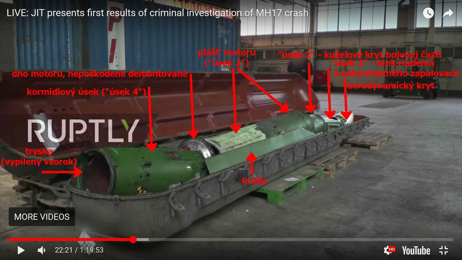 Taky pěkná fotka JITu z r.2016, že. Oni tam fakt snad vystavili část z této UA utilizace, kterou jim poskytla UA pro vyšetřování.. Jinak mi fakt nejde do hlavy, že ta vystavená část nejeví žádné poškození po pádu z výšky 10km :dobre: Ještě by bylo dobré zjistit z fotek či videa (pokud z toho existuje něco jiného než tento záběr) číslo teto PLŘS a je to