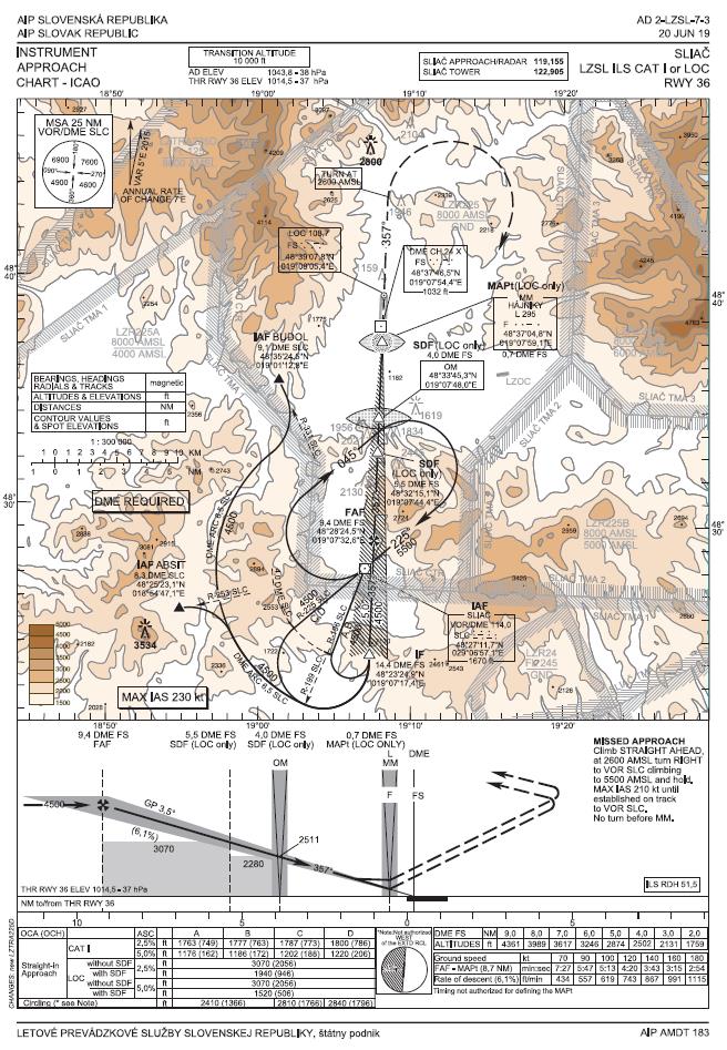 Předpokládám, že MiG-29AS patří rychlostně do kategorie D a určitě je schopen dosáhnout gradient stoupání > 5% … jeho OCH (minimální výška nad překážkami) pro RWY36 na LZSL je tedy Approach chart (viz níže) 206 ft (63 m).
