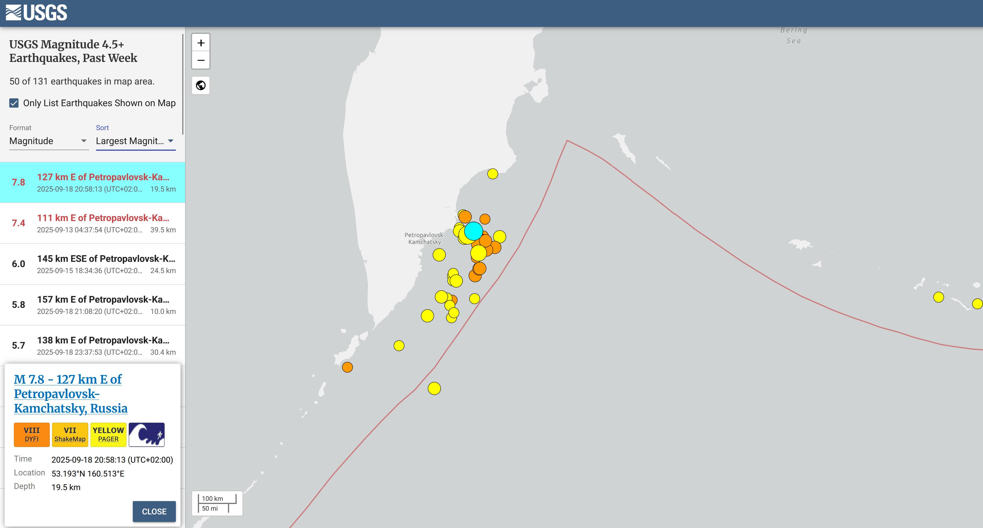 M 7.8 - 127 km E of Petropavlovsk-Kamchatsky, Russia