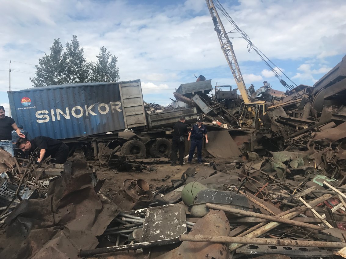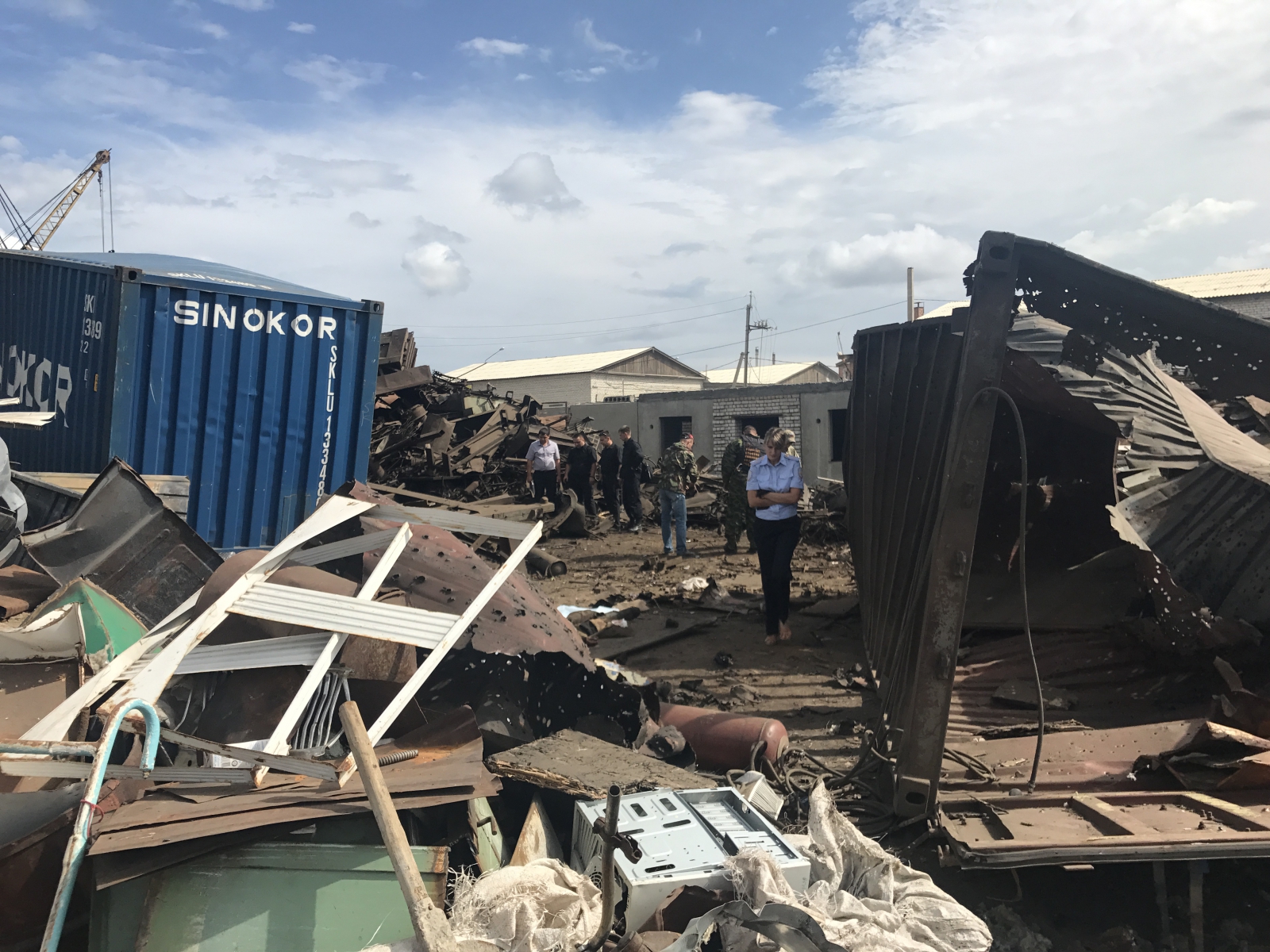 Foto z vyšetrovania po výbuchu bojovej hlavice PVO rakety systému S-200 (tie diery v plechoch):