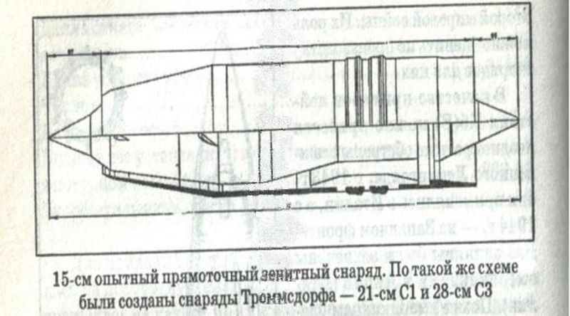 Nemecký výskum ~1930, experimentálny 15cm pl granát Trommsdorff, existovali aj experimentálne granáty kalibru 21cm a 28cm