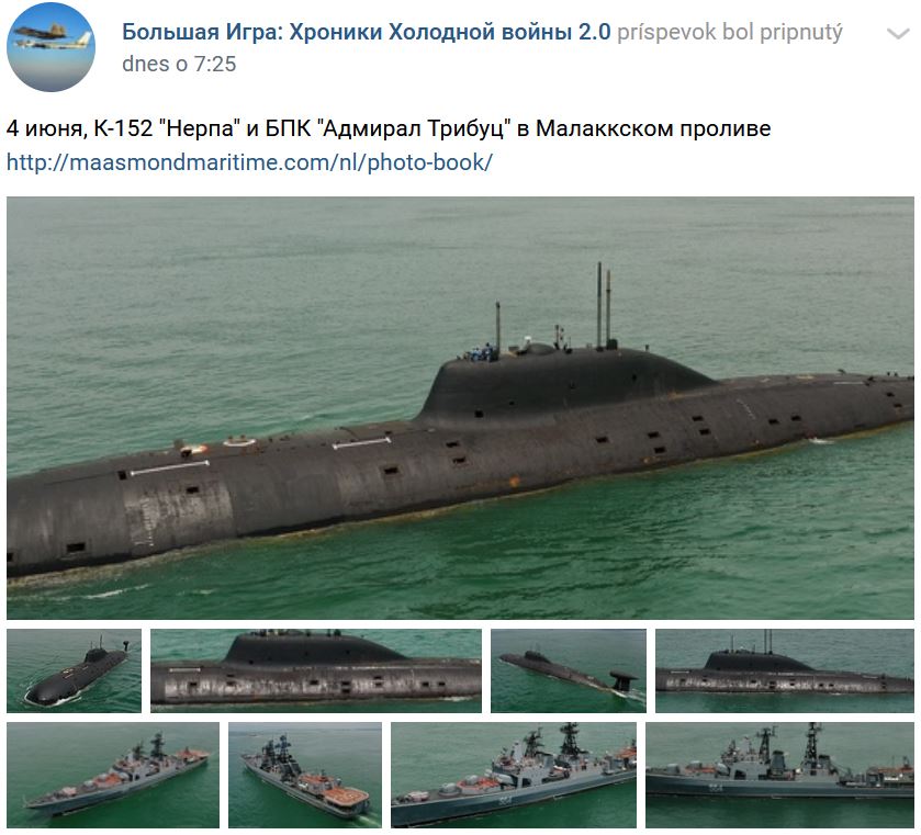 ↑ V piatok 04.06.2021 foto z Melacký prieliv / Malakkský prieliv s doprovodnou loďou "Admirtal Tribuc" (Адмирал Трибуц), biela 564: