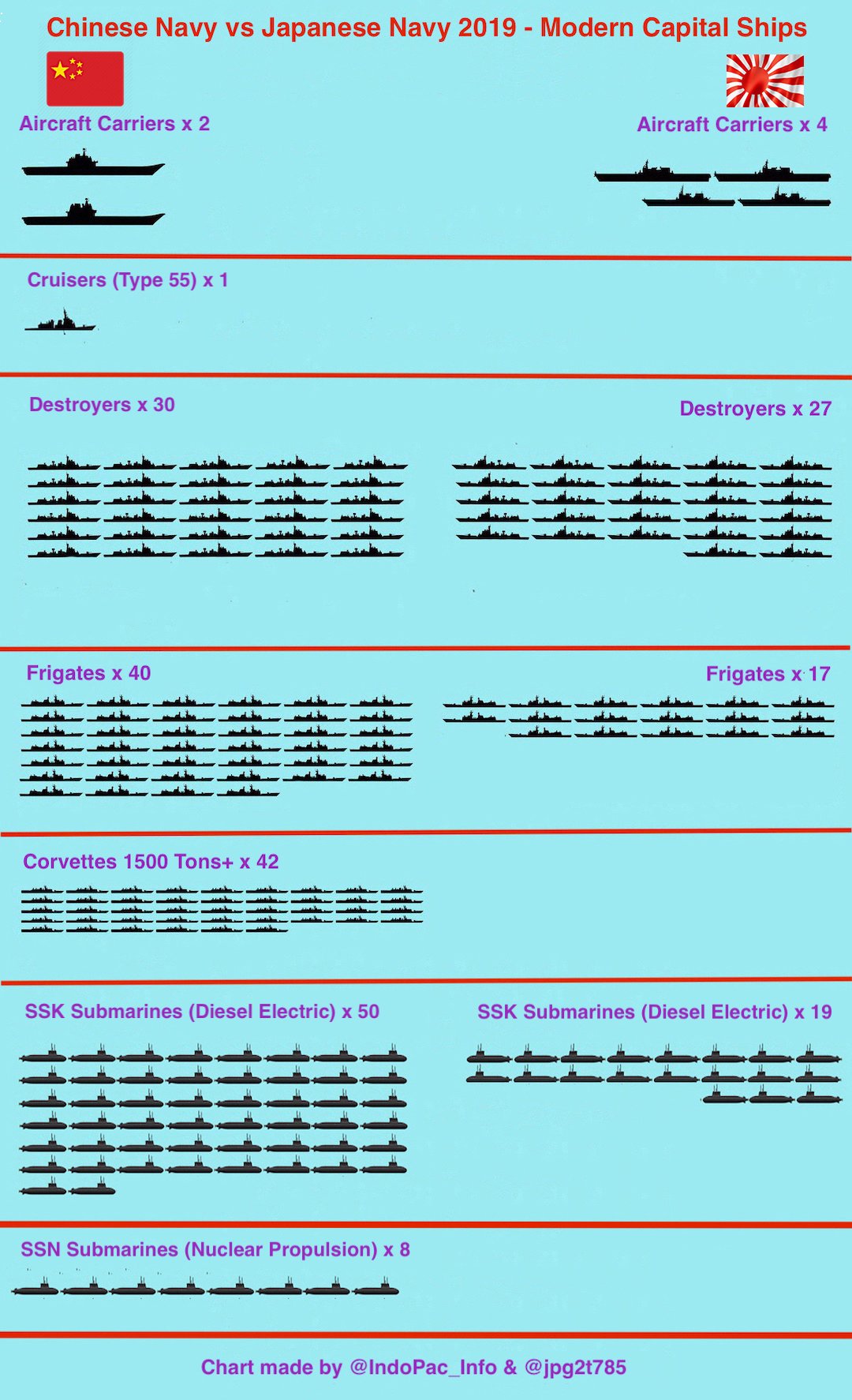 Porovnanie námorníctva Číny a Japonska v počte jednotiek Zdroj https://twitter.com/IndoPac_Info/status ... 3373292544 z 18.05.2019