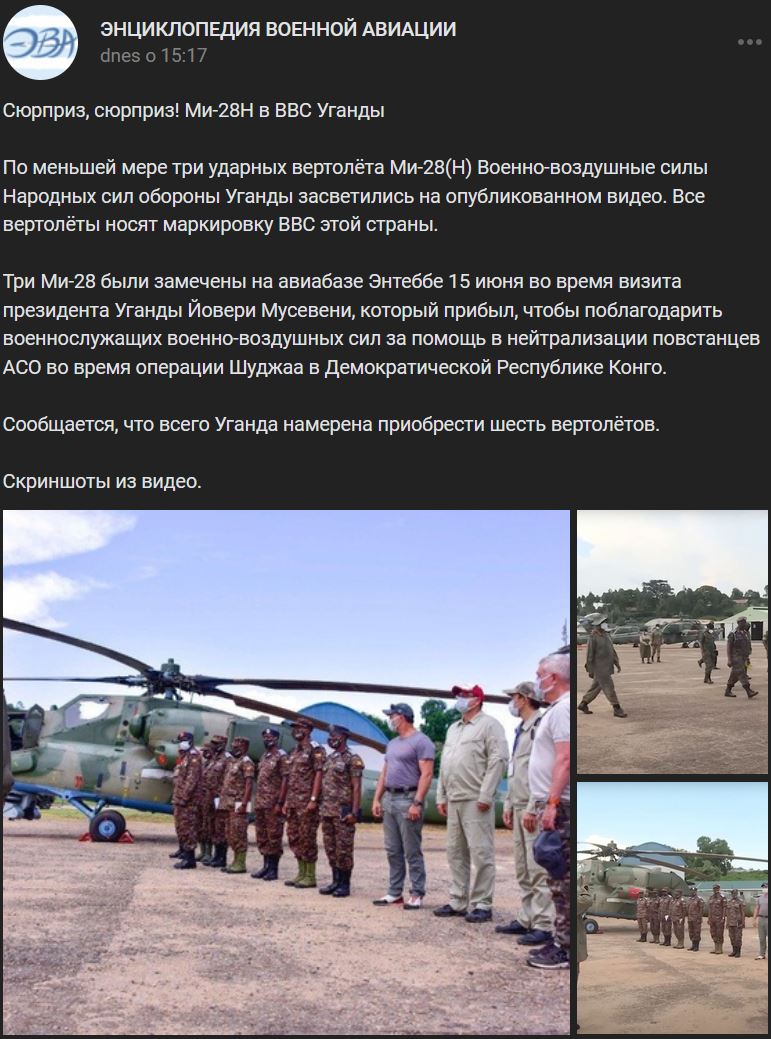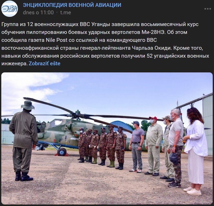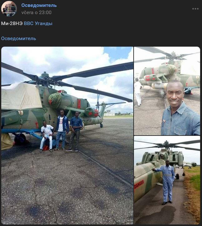 Nile Post zdôraznil, že vlani Rusko dodalo Ugande sériu bojových vrtuľníkov Mi-28NE (Ми-28НЭ) (exportná verzia Mi-28N (Ми-28Н) Nočný lovec). Zdroj https://vk.com/wall-173678697_318464 / https://t.me/vertolatte/6962 z 24.03.2023